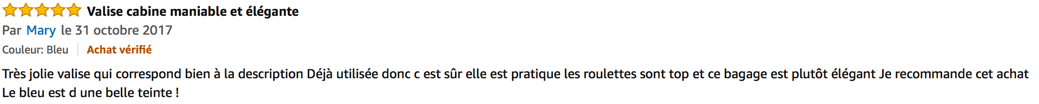 Enfin, son plus grand atout se caractérise par son prix. C’est l’un des bagages de qualité pas chers que l’on retrouve sur le marché. Ce qui avantage de nombreux consommateurs, notamment ceux qui n’ont pas un budget aisé pour l’achat d’un trolley haut de gamme.